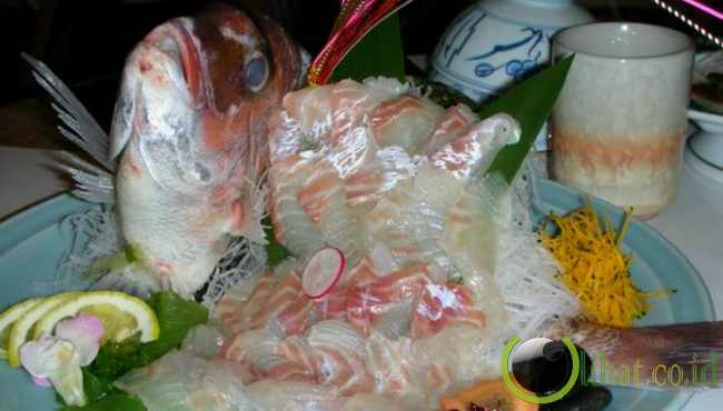 [lihat.co.id] - Ikizukuri adalah masakan yang berasal dari Jepang. Pada dasarnya Ikizukuri adalah ikan mentah namun dihidangkan tidak seperti sashimi. Seorang koki akan memotong-motong tubuh ikan ketika ikan tersebut masih hidup dan itu dilakukan di piringmu. Sehingga ikan ini akan merasa sekarat dengan bagian tubuh tercerai berai dan berusaha bertahan hidup. Masih sanggup untuk memakannya?