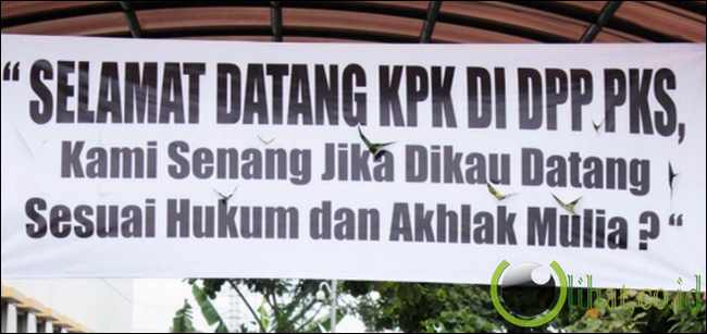 [lihat.co.id] - PKS menyiapkan penyambutan kepada penyidik KPK yang akan melakukan penyitaan terhadap mobil milik mantan Presiden PKS Luthfi Hasan Ishaaq, Senin (13/5) lalu. Tiga spanduk berwarna putih dipasang di halaman gedung.