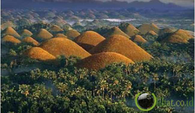 [lihat.co.id] - Lebih dari 1.770 bukit berbentuk kerucut sempurna dapat ditemukan di wilayah Visayas Tengah dari Filipina, lebih tepatnya di Bohol. Sayangnya, bukit-bukit yang menakjubkan tidak benar-benar terbuat dari cokelat, tetapi mereka terlihat penasaran. Bukit-bukit tampak seperti lautan ciuman cokelat selama musim kering.